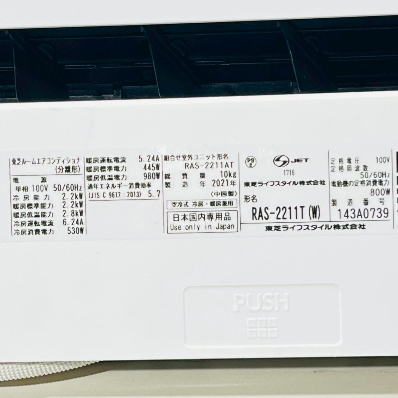 ♦️TOSHIBA a3767 エアコン 6畳用 2021年製 17♦️